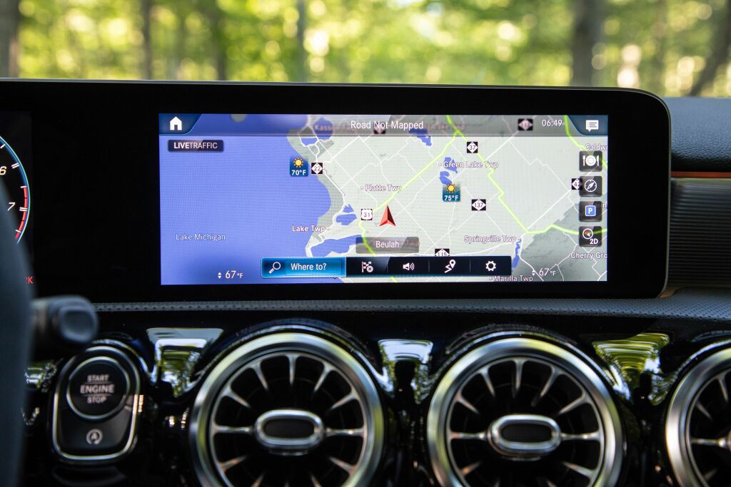 En el interior equipa un panel de instrumentos digital y una pantalla táctil de 10.25”, sistema MBUX con comandos de voz, conexión con Android Auto y Apple CarPlay, cargador inalámbrico, climatizador automático bi-zona, asientos tapizados en cuero y microfibra dinamica, sillas delanteras regulables eléctricamente con tres memorias, volante multifunción forrado en cuero con sensores táctiles, paletas de cambio detrás del volante, iluminación ambiental y control crucero. El maletero es de 420 litros.