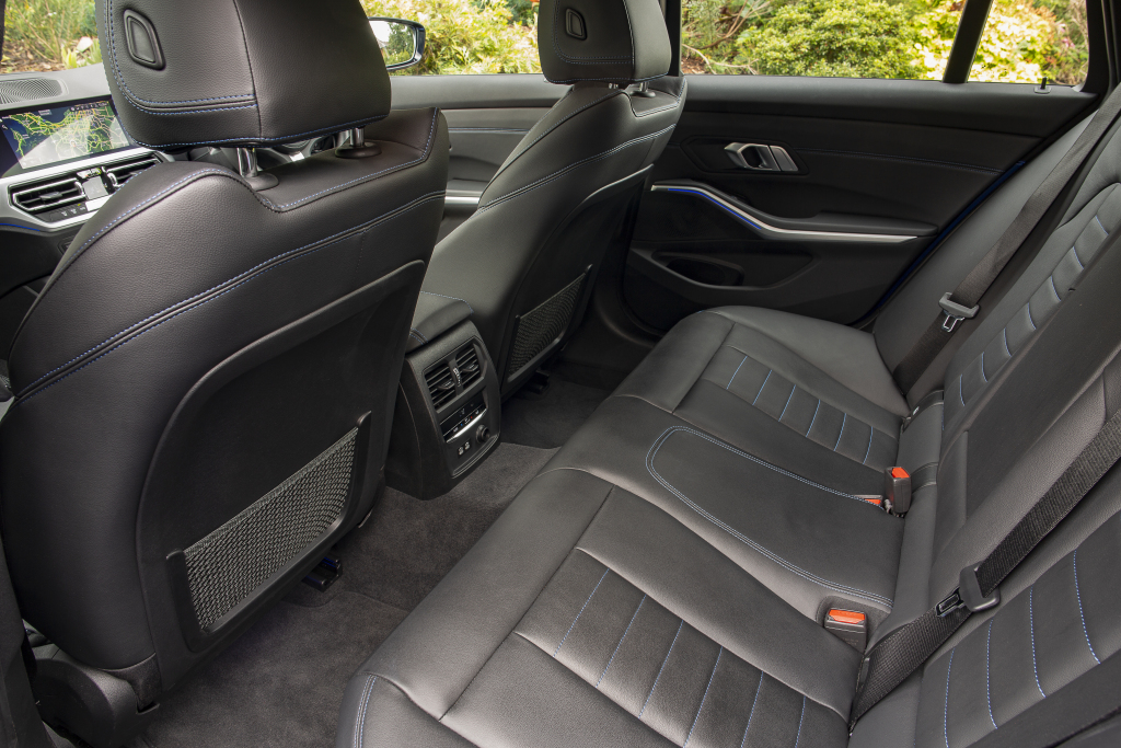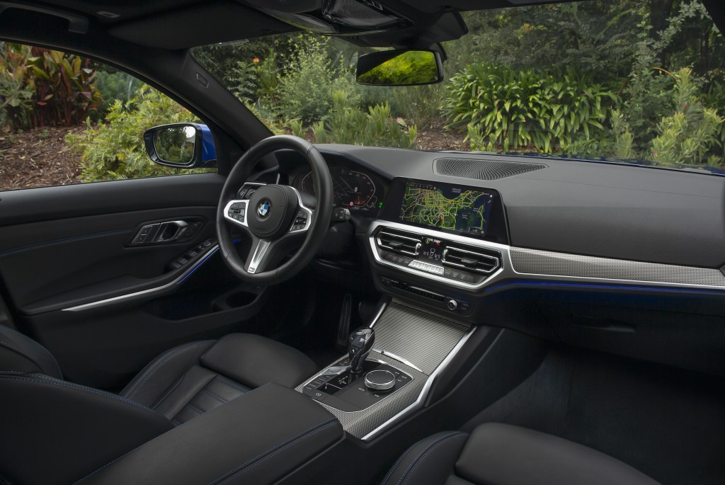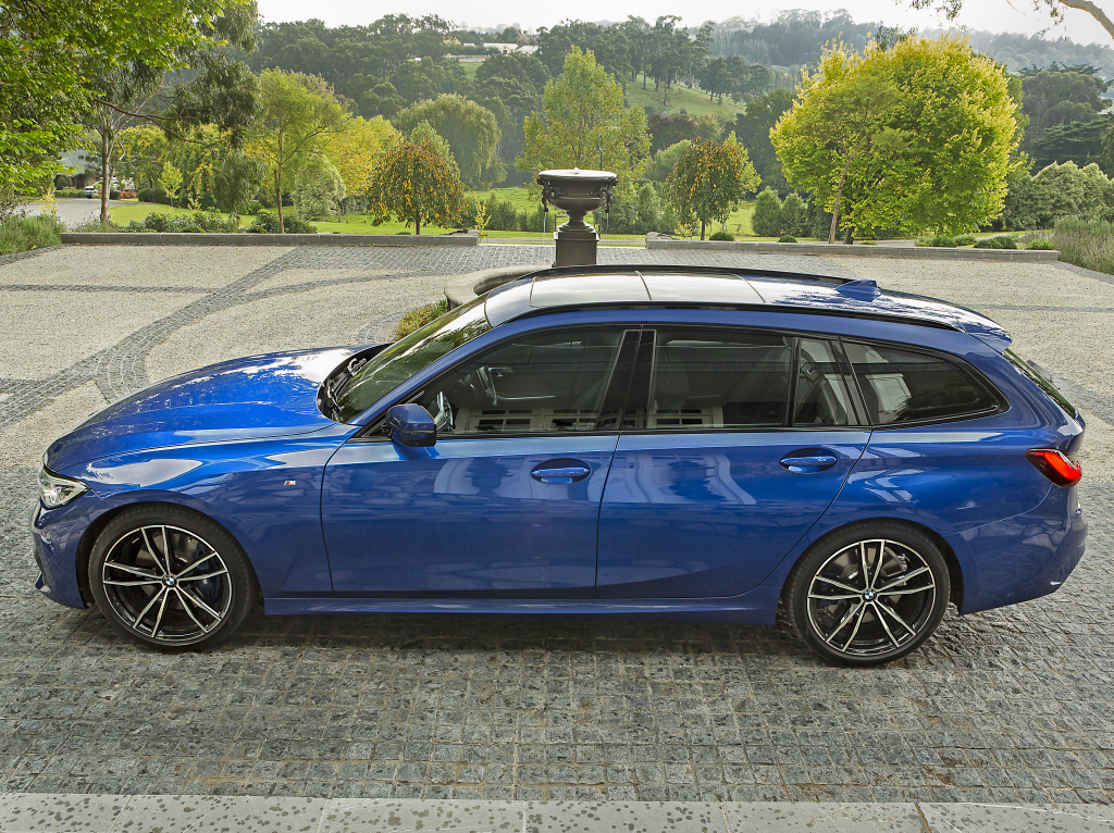 Este Station Wagon viene equipado con una pantalla táctil de 10.2” con sistema operativo 7.0, asistente personal “Hey BMW” y conexión a Apple CarPlay; panel digital de 12.3”, climatizador automático bizona, asientos tapizados en cuero Sensatec con alcántara, sillas delanteras regulables eléctricamente con memorias para el conductor, volante multifunción M forrado en cuero, molduras en aluminio, techo panorámico, apertura eléctrica del portón trasero y freno de estacionamiento eléctrico.
