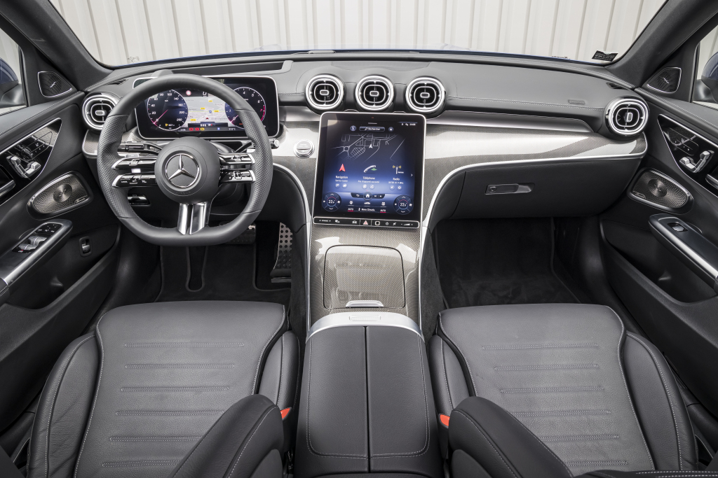 El C200 AMG Line equipa un panel digital de 12.3”, pantalla táctil de 11.9”, sensor de huella, asistente “Hey Mercedes”, conexión inalámbrica con Android Auto y Apple CarPlay, cargador inalámbrico, climatizador automático bi-zona, asientos tapizados en cuero, sillas delanteras deportivas con soporte lumbar de 4 vías, volante deportivo con sensores táctiles y levas de cambios,iluminación ambiental, sensor de luz y lluvia.