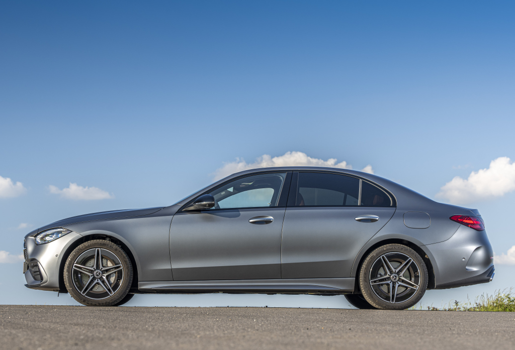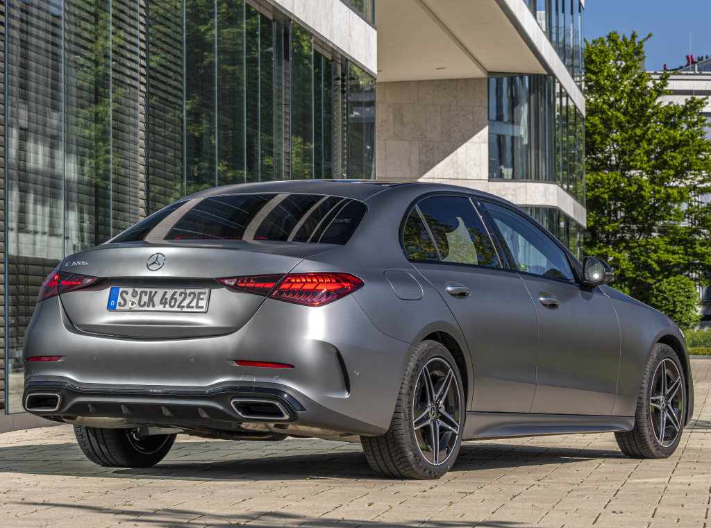Al frente los faros LED adoptan el sistema High Performance en el C300 y con el paquete estético AMG Line la parrilla ovalada ahora tiene pequeñas estrellas de tres puntas. A los lados tiene líneas de carácter más suaves que pasan por la parte superior e inferior de las puertas, mientras que atrás las luces traseras adoptan una forma triangular.