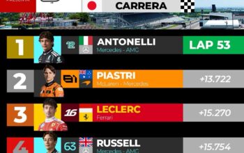 Nota: Descalabro de Charles Leclerc, quedando eliminado de la Q3, buen trabajo de Logan Sargent llegando a la Q2 y obteniendo el 12, y lamentablemente actuación de Sergio Pérez quién en condiciones cambiantes de pista tuvo un despiste lo dejó por fuera de la sesión de clasificación al quedar atascado en la leca.